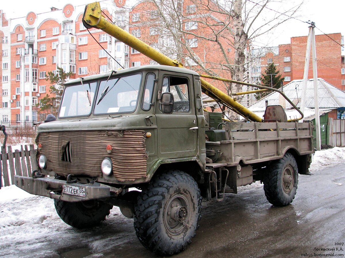 В автопарках энергетиков и связистов-кабельщиков почти всегда имеется бурильно-крановая машина (она же "ямобур"), чаще всего это модель БМ-302 и её модификации: современные в большинстве своём базируются на шасси ГАЗ-3308, старые - на ГАЗ-66. Несмотря на возраст, многие ямобуры на старых добрых "шишигах" работают до сих пор. Как-то получилось отснять процесс работы такой машины по установке опоры для воздушной линии связи.