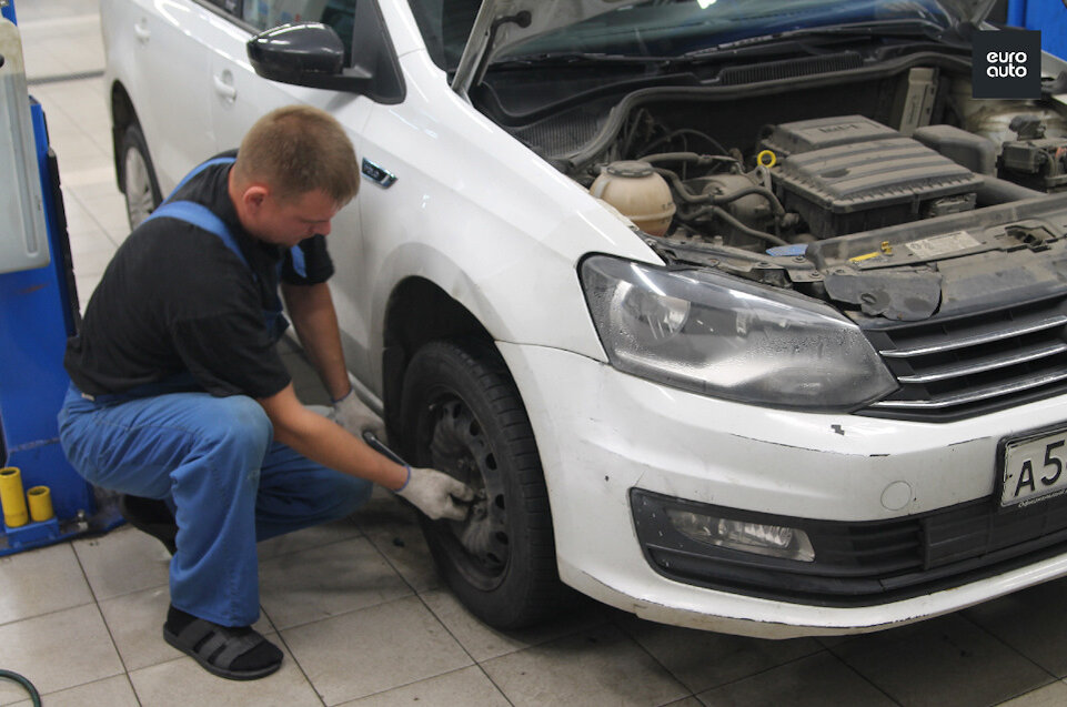 POLO на наших дорогах много, замена колодок — наиболее часто проводимая процедура, и вот они сошлись в одной из наших СТО, как звёзды на небосводе. Приступаем: