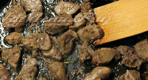 Телячья печень часто добавляется в другие блюда, так как легко готовится и имеет особенный вкус. Чтобы она была мягкой, жарить нужно на умеренном температурном режиме. Ломтики можно порезать тонко или большими дольками, но время приготовления при этом может увеличиться до десяти минут. Жарить говяжью печёнку рекомендуется в бульоне, но можно и на обычном подсолнечном масле. Для абсолютного избавления от горького привкуса, можно вначале отварить данный вид потрохов в солёной воде, а затем уже обжарить. В конце процедуры нужно не забыть добавить специи по вкусу.