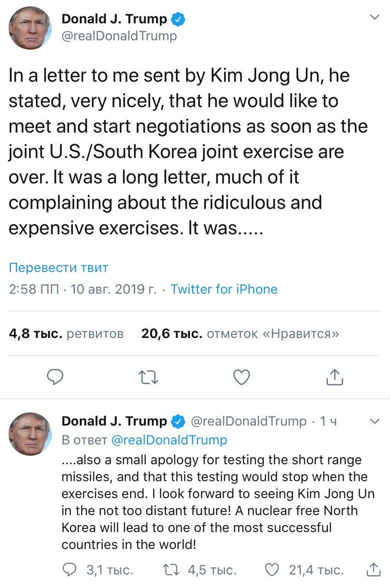 «В письме, направленном мне Ким Чен Ыном, он весьма любезно изложил, что хотел бы встретиться и начать переговоры сразу после того, как завершатся совместные учения США и Южной Кореи. Это было длинное письмо, большую часть которого составляли жалобы на нелепые и дорогие учения», – написал президент США. Он также подчеркнул, что в послании Ким Чен Ын принес «краткие извинения за проведение испытаний ракет малой дальности». «Эти испытания закончатся, когда завершатся учения», – рассказал Трамп о содержании письма северокорейского лидера. «Я с нетерпением жду встречи с Ким Чен Ыном в недалеком будущем!» – вновь повторил американский лидер. Он подчеркнул, что отказ Пхеньяна от ядерного оружия сделает КНДР «одной из самых успешных стран в мире». Кстати, траты на лоббизм в США достигли максимума при Трампе:
