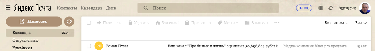 Буквально несколько дней назад захожу в почту, а там письмо, которое привело меня в некоторое замешательство: Открываю его и вижу, что некая медиа-компания предлагает мне продать мой канал "Про бизнес и жизнь", за тридцать лямов с копейками. Из соображений безопасности, я не стал кликать по ссылкам, а просто Яндекснул по названию этой компании. Заодно решил узнать, кто этот таинственный Роман, отправивший мне письмо. Поиск выдал мне несколько отзывов, из которых я узнал, что это какая-то копирайтерская площадка, а Роман вроде как, ее основатель. Хоть в письме и была фраза о том, что канал для связи нужно использовать только тот, что указан ими, но я нашел Романа ВКонтакте и написал на указанную, на странице почту. Ответ пришел в тот же день. Специалист службы поддержки просил меня обратиться с этим вопросом на ту же электронную почту, которая была указана и в моем письме. Получалось, что письмо мне пришло не от мошенников, которые представились мне Романом, действительно от него самог