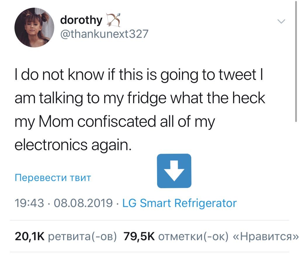 а своей 15–летней дочери сидеть в интернете и забрала все гаджеты. Малая умудрилась зайти в интернет через ХОЛОДИЛЬНИК LG и написать твит. LG выразил ей свою поддержку!
