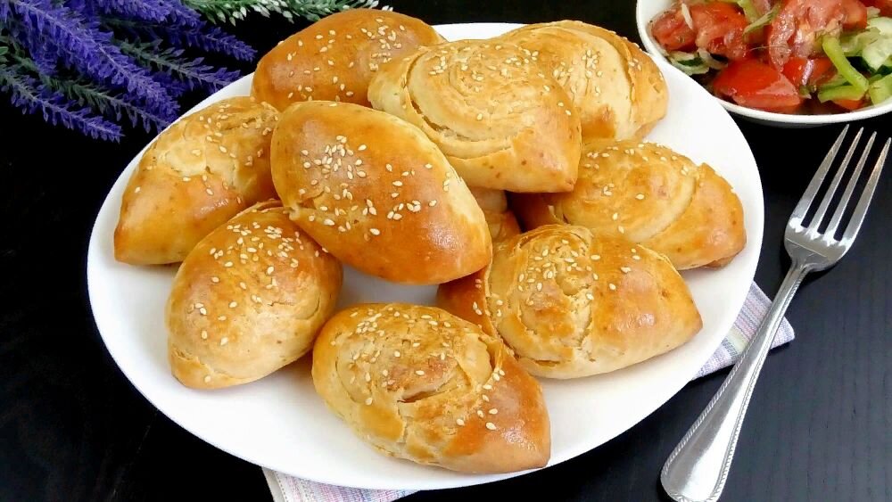 Привет! Сегодня пеку вкусные булочки с картофельной начинкой. К слову сказать, начинка может быть самая разная. Результат Вас приятно удивит и впечатлит. Угощайтесь)) Ингредиенты: Для теста: Мука - 300 гр. Яйцо - 100 гр. Ряженка 2,5% - 100 мл. ( или кефир) Растительное масло - 50 мл. Соль - 1 ч.л. без горки Сахар - 1 ч.л. без горки Разрыхлитель - 1 пакетик ( 10 гр.) Кроме того: Яйцо - 1 шт. для смазывания Мягкое сливочное масло - 100 гр. Кунжут - 1 ст.л. Картофельное пюре с обжаренным репчатым луком( начинка) ПОШАГОВЫЙ РЕЦЕПТ ПРИГОТОВЛЕНИЯ : Если Вам понравился этот рецепт -ставьте Класс, поделитесь в соцсетях или напишите комментарий) Подробное приготовление Вы можете посмотреть в моем видео ниже. Приятного аппетита!
