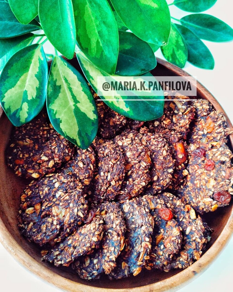 Про эти печенюхи я писала уже минимум три раза, а они всё-равно они просятся в Ленту 😊 Смотрите, какие они красивые и очень простые. Мы берем: 🌱стакан геркулеса 🌱 два банана 🌱 яблоко 🌱 горсть фиников и изюма 🌱 ложку кэроба/какао Приготовление: 🌱 геркулес измельчаем в блендере с S образным ножом, мелко, но не до муки, а так чтобы оставались кусочки 🌱всё остальное, кроме изюма, тоже измельчаем в мелкие-мелкие кусочки 🌱 добавляем изюм, замешиваем массу, выкладываем на силиконовый коврик. Они не обязательно должны лепиться и держать форму, можно выложить ложкой 🌱 отправляем в духовку на 20 минут на 180-190 градусов 🌱 в процессе приготовления можно перевернуть их, чтобы просушились с другой стороны. Если бы не было привычки освящать еду на алтаре, то есть их я бы начинала прямо с противня 100%, может быть даже выхватывать из духовки 😁 Печенюхи хороши тем, что они плотные и сытные, и одной-двух штук хватает надолго. В отличие от покупной выпечки, которой можно умять полпакет