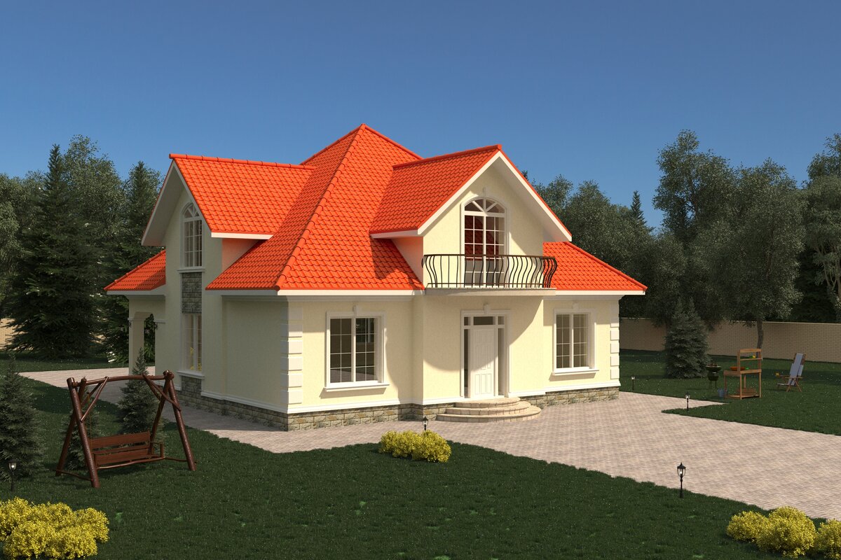 Проект дома в классическом стиле общей площадью 212.1м2. Габариты позволяют посадить его на среднестатистические 6 соток. Если вы собираетесь строить дом, у вас участок с шириной фасада от 18м, рассмотрите этот вариант. Фундамент квадратной формы, крыша четырехскатная с фронтонами на фасадах. Характеристики Д 12600 * Ш 12100 * В 8700