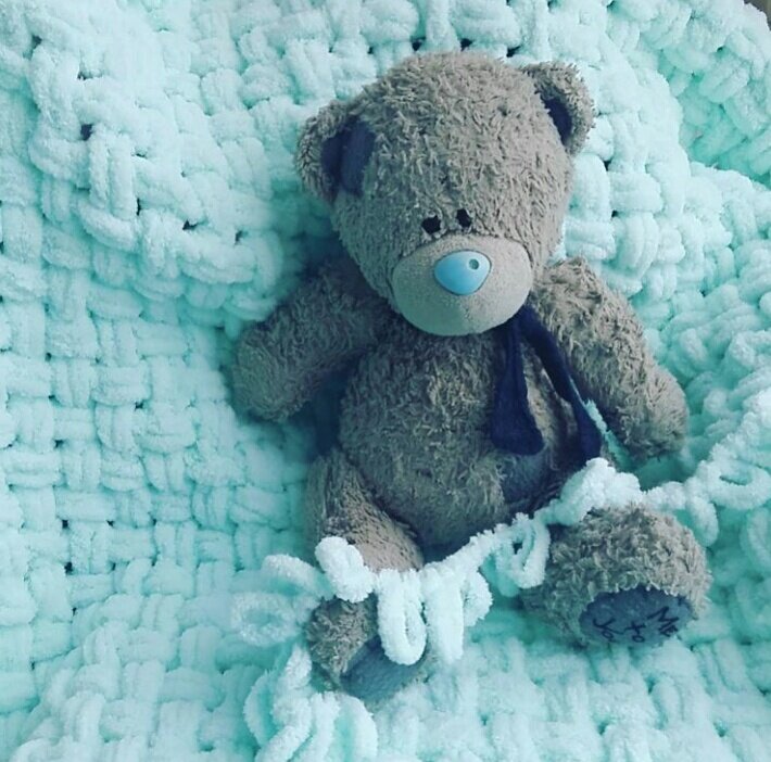 А знает ли мой дорогой читатель о том, что для вязания не обязательно иметь спицы и крючки? Да-да! Есть такие виды пряжи, которую можно вязать руками! И сегодня я хочу вас познакомить не просто с очень толстой пряжей, а с пряжей турецкого производителя, которая называется " Пуффи". Я сама, когда увидела её в магазине, никак не могла понять в чём же здесь прикол! Понадобилось объяснение продавца, чтобы понять как ею пользоваться! Дело в том, что эта пряжа представляет собой уже готовые петельки, которые при помощи обычных человеческих рук превращаются в уютнейшее полотно! Пряжа настолько мягкая и нежная, что её можно сравнить разве что с летним пушистым облачком! Конечно же я не смогла не купить это чудо, чтобы попробовать её в деле! Купила... Начала изучать ролики в ютьюбе. Оказывается из неё можно связать столько красивых узоров! Но я решила для начала остановиться на классической "плетёнке"! Пряжа вяжется очень быстро, петельки ложатся ровно, образуя красивый и нежный узор! Из упак