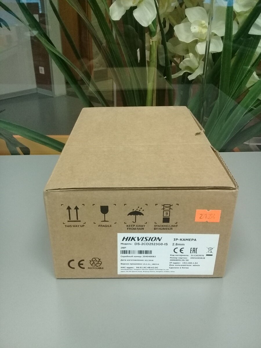 Пришла парочка новых камер для видеонаблюдения, характеристики приведу ниже. Вкратце расскажу по каким критериям выбрана именно эта камера. Цены Комплектация Камера сделана добротно и выглядит надёжно. Поставляется в коробке. На коробке указана модель, серийник, дата изготовления, версия прошивки (молодцы), количество мегапикселей, IP адрес, логин (admin). В принципе, достаточно для настройки, даже мануал не потребуется. Внутри всё хорошо упаковано. В коробке сама камера: Прозрачная часть заклеена плёнкой. Имеется 4 разъёма: С обратной стороны информация: Потолочное крепление: Молодцы, что указали стрелкой Front. Камера крепится к креплению тремя болтами. Пакетик в котором: Отдельный пакетик с защитным кожухом для влагозащиты соединения RJ-45. Обязательно установите при уличном подключении. Инструкция имеется. Характеристики Настройка Для настройки нам понадобятся следующая информация: адрес по умолчанию в камере 192.168.1.64, логин - admin. Подключаем камеру к коммутатору или компу. З