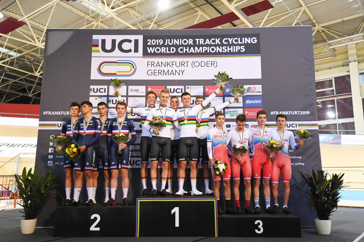 Новым мировым рекордом завершилась командная гонка преследования на чемпионате мира по трековому велоспорту среди юниоров. Лавры рекордсменов перешли от российских гонщиков к немецким. Результат Льва Гонова, Глеба Сырицы, Ивана Смирнова и Дмитрия Мухамедьярова в 4 минуты и 972 тысячных продержался два года. Новыми рекордсменами стали Тобиас Бак-Грамко, Ханнес Уилкиш, Пьер-Паскаль Кеуп и Николас Хайнрих проехали 4000 метров за 3 минуты и 58,793 секунды. При этом рекорд побили все команды, оказавшиеся на подиуме. Немецкая команда сражалась за золото со сборной Франции, которую представляли Кевин Вакулин, Антуан Корваазье, Клеман Пети и Флориан Пардон. Французы показали время в 3 минуты и 59,543 секунды. Борьба за бронзовую медаль свела на подиуме команды России и Новой Зеландии, и преимущество россиян оказалось подавляющим: Иван Новолодский, Влас Шичкин, Илья Щегольков и Егор Игошев также проехали 16 кругов меньшее чем за 4 минуты — за 3 минуты и 59,955 секунды. Их соперники — за 4 минут