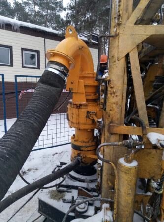 The GEOMASH group of companies modernizes the LBU-50 drilling rigs, equipping them The technology of drilling with airlift is effective in the construction of wells with a diameter of 150 to 1000 mm to a depth of 150 m. Technological equipment for drilling with air-lift to a depth of 50 meters: 1. Double drill rods - 20 pcs. 2. Drag bit 500 mm - 1 piece 3.Transmitter with check valve - 1 pc. 4.Two gripping elevator for air-lift pipes - 1 pc. 5. Wrench - 1 pc. 6. The fork for the airlift rods - 2 pcs. 7. The fork for the TBSU-85 drill rods- 1 pc. 8.Table for work with air-lift rods - 1 pc. 9. Hydraulic wrench - 1 piece 10.Swivel - 1 pc. 11.The insert in the working table - 1 pc. 12. Pressure hose with the swivel adapter - 1 pc. 13. Adapter from the frame elevator to the drill rod with trihedral connection - 1 pc.