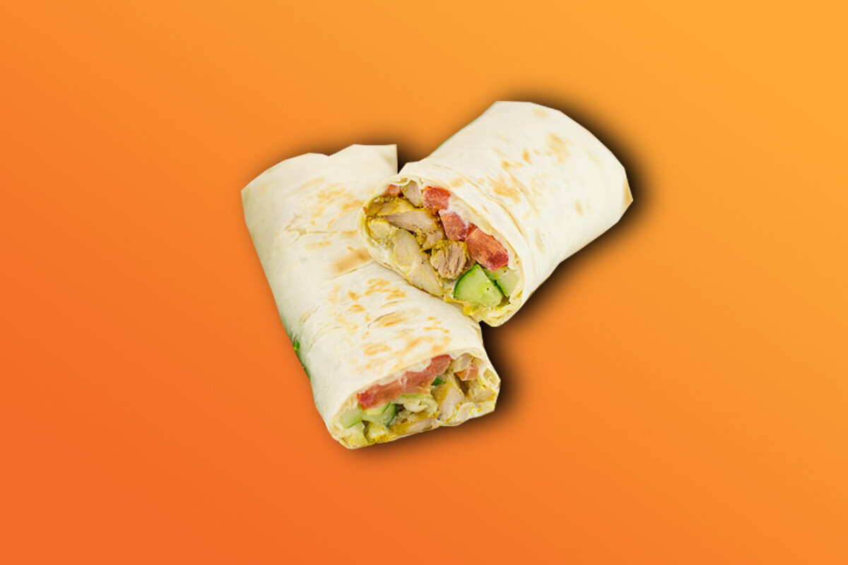 3) Аккуратно закручиваем начинку в лаваш и получаем очень вкусную шаурму! Перед употреблением ее нужно разогреть в микроволновке 30 секунд.