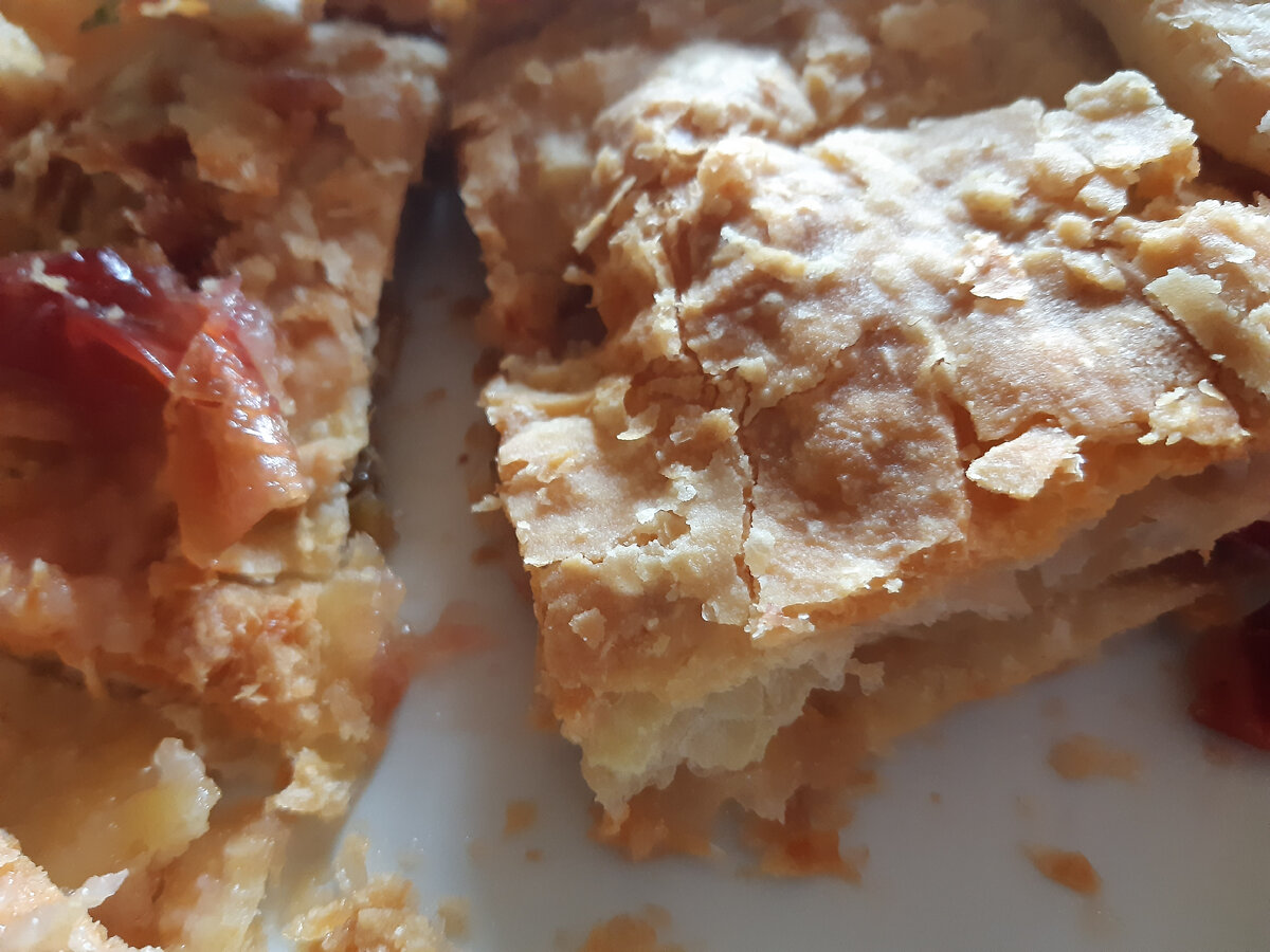 Нежнейший пирог , у нас его любит вся семья. Тоненький слой теста и запечённые яблоки внутри... Съедается еще до того как успеет остыть))). Взять пачку слоёного теста 0.5 кг.(я покупаю). Раскатать его в тонкий пласт и выложить на предварительно смазанный противень так, чтобы одна половина была на противне, а вторая была как крышечка Порезать крупными кусочками яблоки и посыпать сахаром по вкусу. Можно добавить корицу или лимонную цедру. Можно порезать не только яблоки, но и груши. Или вообще сделать грушевый пирог. Затем накройте второй половиной теста и залепите края. Сверху нужно сделать отверстия, а в них положить кусочки сливочного масла. Поставить в духовку на 180 градусов минут на 40. Как крышечка пирога поджарится можно вытаскивать. Приятного вам аппетита 🤗.