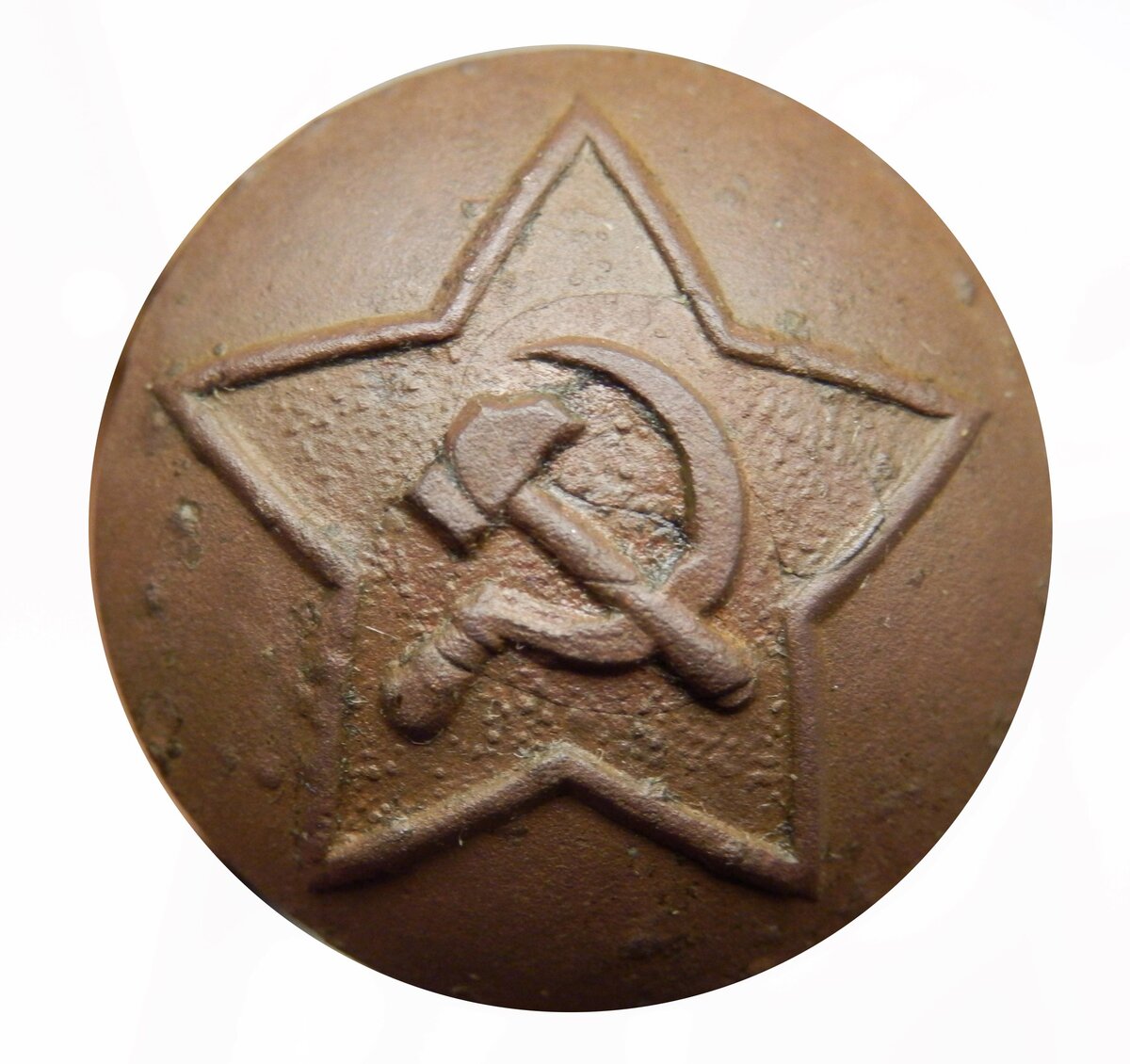 Пуговица Рабоче Крестьянской Красной Армии Шел 1923 год. Прошло более 5 лет с момента установления власти большевиков. Однако технология изготовления пуговиц оставалась неизменной с царских времен, конца 19 начала 20 века. Ушко продевалось сквозь основу заготовки и ударом пресса наглухо выштамповывалось изображение на аверсе и соответственно на краях ушка. Пуговицы отличаются по характерному зигзагу в центе, это края от ушка. Применение царской технологии объясняется просто, предприятия были национализированы и преобразованы в другие названия. В частности фабрика выпускающая пуговицы РККА Промвоенхоз , преобразована из Фабрики металлических пуговиц братьев Бух , которая была закрыта 23 марта 1918 г. Постановлением президиума Секции по металлу ПСНХ от 8 октября 1920 г. национализирована, переименована в Петроградскую государственную фабрику металлическо штамповочных изделий и передана Правлению фабрично-заводскими предприятиями Промвоенхоза, с 1926 г. в составе предприятий треста "Тре
