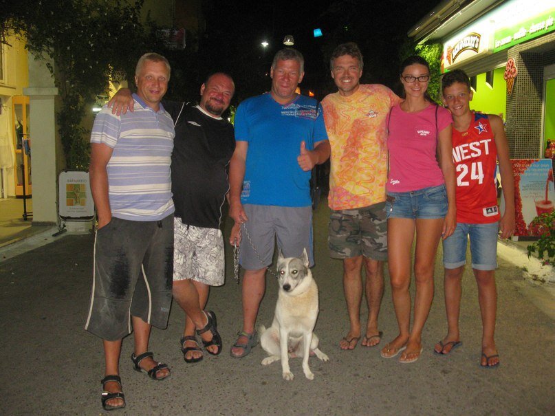 Рядом новая яхта, пришли ночью. Капитан - молодой итальянец, белый, больше на прибалта похожий, зовут Мигель. Жена капитана русская, Ирина, очень красивая худенькая брюнетка. Скромная и аккуратная, из Питера. Познакомились, обменялись визитами, выпили, сходили все вместе на открытый нами пляжик купаться. Ребята повторно научили нас ловить правильных икряных ежей, цветных с короткими иглами, так что в целях закрепления знаний и практики набрали целый мешок. Я нырял, снова видел здоровую мурену, но подбить не смог: она мастерски пряталась в нору. Умка откуда-то привела с собой щенка. Этот оболтус немедленно разорвал в клочья модную майку Мигеля и стал буянить окрест. В частности воровал и рвал народные полотенца на пляже. Народ относился к паразиту с юмором. Странно. Для нас очень странно, что тварь не прибили. Когда вернулись на яхту, Оксана уже гостила на "Конкурсе". Купалась и нежилась в мужском внимании и поклонении. Мы тоже подгребли туда на динги, полюбопытствовали на развитие флир