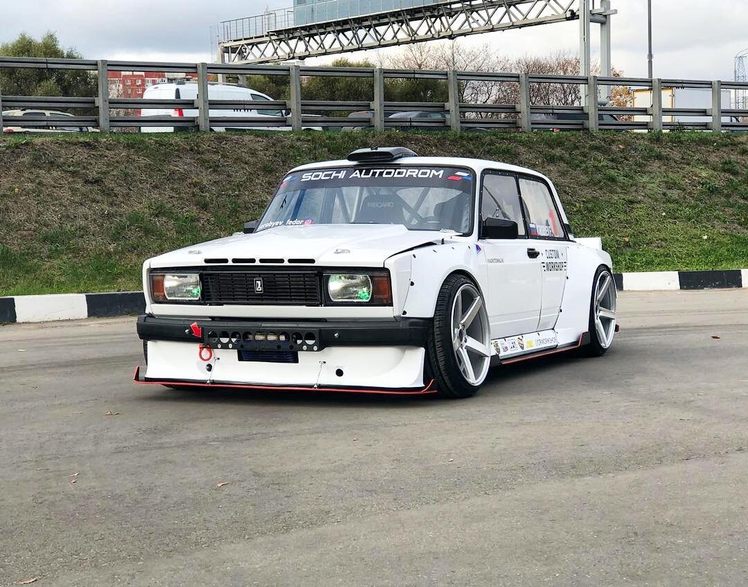 Обычно, когда слышишь фразу «дрифтовый автомобиль ваз 2105» на ум сразу приходят картинки зимней парковки у торгового центра по которой накручивают пятачки уже полумертвые, ржавые жигули. Но хозяину этого автомобиля более 10 лет назад пришло в голову построить дрифт – жигу совсем другого уровня. Знакомьтесь, это „ЖИГАЦАРЬ“! С каждым годом она становится красивее, быстрее и дороже. Более 10 лет назад началась постройка этого автомобиля. Ее внешний вид менялся чуть ли не каждый год и делал ее все красивее. Сейчас от обычной пятерки у нее остались лишь внешние очертания. Под капотом японский двигатель 2JZ-GTE развивающий мощность в 610 л.с. и 810 Нм крутящего момента. Этот двигатель трудится в паре с BMWшной коробкой передач от дизельной BMW – это позволяет ей спокойной переваривать этот момент и жить долго и счастливо) Передняя подвеска на шарнирных соединениях, для уменьшения люфтов, также это дает более лучшую управляемость по сравнению с резиной и полиуретаном. Задняя подвеска тож