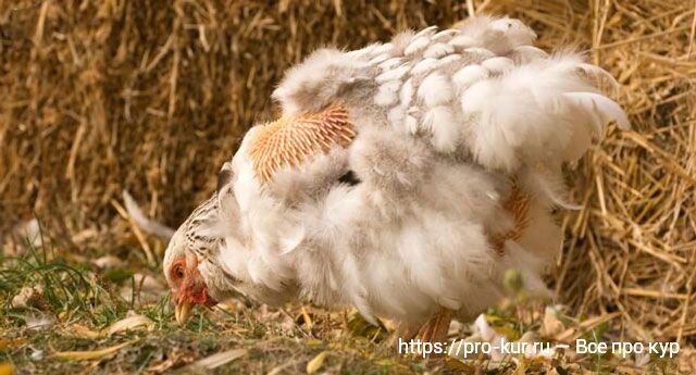 Птица начнет терять перья на голове, затем вниз по спине, бокам и бедрам и, наконец, хвостовые перья сбрасываются. Это может быть жалкое зрелище. И новички-птицеводы могут недоумевать, почему дворик для выгула кур выглядит так, будто лопнула пуховая подушка.