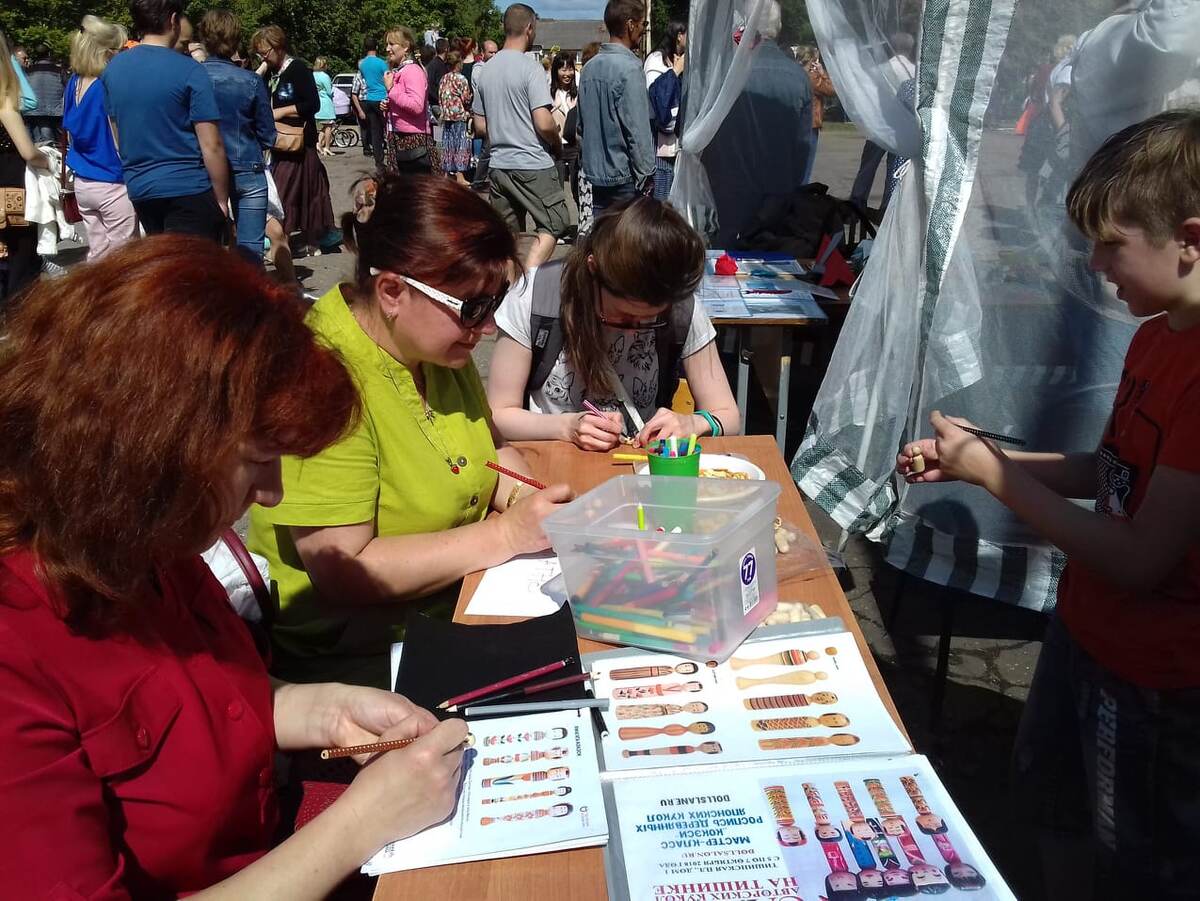 Дорогие друзья! Как мы уже писали в одном из репортажей, 10 августа в поселке Мирный Оленинского района Тверской области прошел день поселка, и в этот же день был открыт памятник святителю Николаю Японского перед храмом, посвященном ему. Но, сейчас немного о другом: наша выставка участвовала в этих торжественных мероприятиях вместе с "десантом" энтузиастов, занимающихся японской культурой во главе с Натальей Анатольевной Ерофеевой - автором и руководителем рабочей группы международного проекта «Путь святителя Николая Японского: от Берёзы до сакуры». Мы обязательно расскажем и покажем как проходили торжества, и как вписались в него наши японские мероприятия, а сейчас хотим поделиться нашим личным рекордом, который был поставлен во время них. Мы привезли мастер-класс по росписи японских деревянный кукол КОКЭСИ, и каждый желающий мог бесплатно попробовать свои силы. Очень приятно, что к нам подходили дети родителей, которых привозил Отец Артемий к нам на выставку, где ребята расписывали т