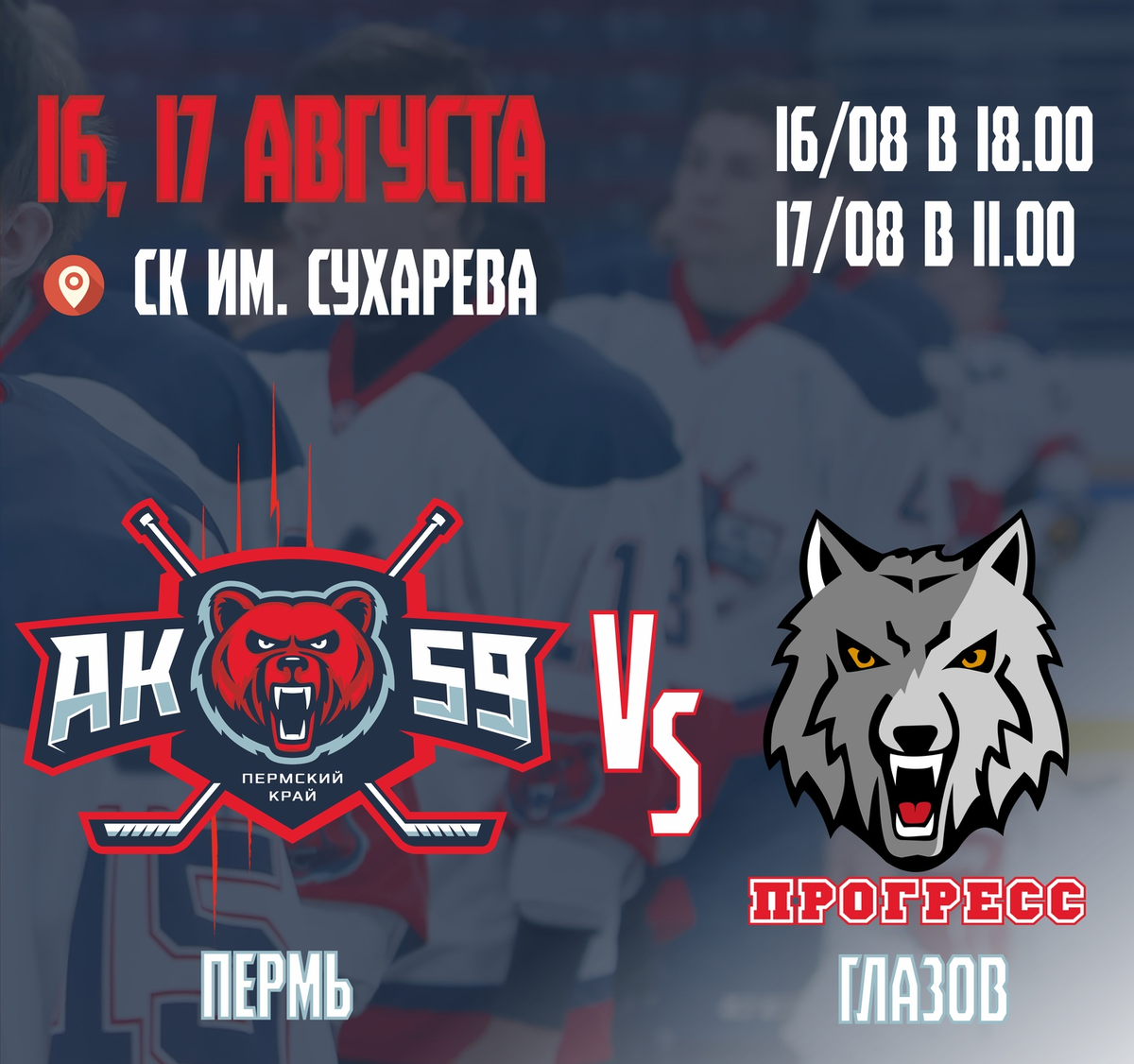 Этим летом пермское хоккейное сообщество ждала отличная новость: в Перми создают команду под названием "АК 59", состоящую из молодых воспитанников хоккейных школ города, которая в новом сезоне начнет выступление в Национальной Молодежной Хоккейной Лиге. В этой лиге могут соревноваться юноши до 20 лет, а это значит, что наша основная команда "Молот-Прикамье" не будет терять своих воспитанников, которым, несмотря на талант, достаточно сложно пробиться в основную команду в юном возрасте. "АК 59" уже сыграли один товарищеский турнир в Магнитогорске, где одержали одну победу в 3 матчах и заняли третье место. 16 и 17 августа у пермских любителей хоккей, наконец, появилась возможность посмотреть на игру молодых спортсменов: в гости к нам приехала команда из Глазова "Прогресс". Матчи проходили на арене спорткомплекса им. Сухарева, где и будет играть пермская команда в течение сезона. Обе игры прошли в равной и упорной борьбе. В первой команды не смогли выявить победителя в основное и дополнит