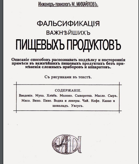 За работу благодарность Лаборатории Будущего. Ю-тьюб канал Diodand выложил очень смачное видео о фальсификации продуктов питания в Российской Империи. В их материале, на примере методички по борьбе с фальсификатом тех лет, раскрыта лишь малая часть известных тогда нечистым на руку дельцам приёмчиков.