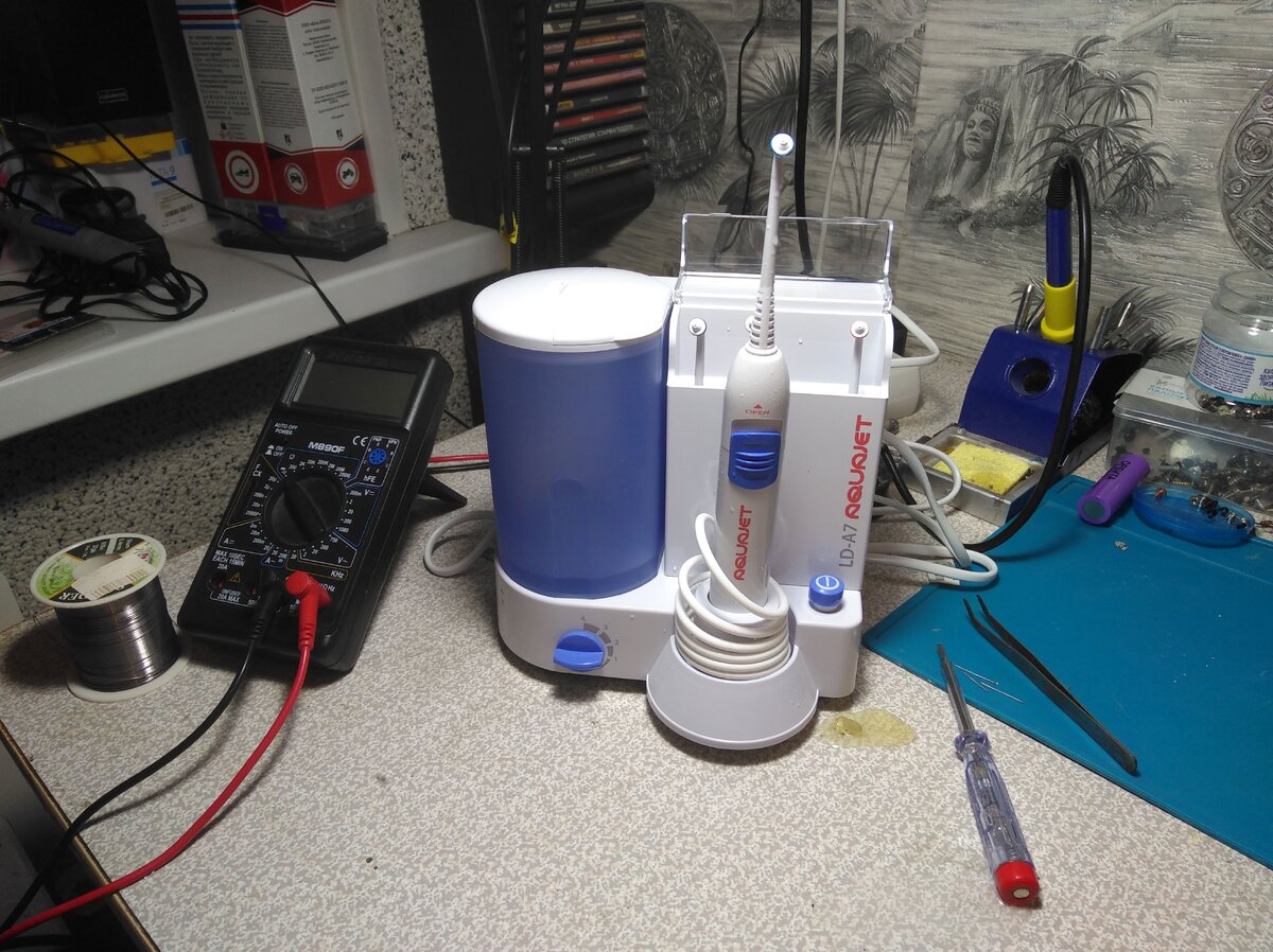 А знаете за что я люблю свою работу? На это есть много причин и одна из них - это постоянное знакомство с новой техникой и необходимость решения новых задач в кратчайшие сроки. Как ни крути, а эта причина очень часто бодрит душу и заставляет заниматься самообразованием. Например, совсем недавно мне пришлось познакомиться с устройством под названием "Ирригатор". Для тех кто не знает, хочу сразу пояснить, что данное устройство предназначено для выполнения гигиенических процедур ротовой полости в домашних условиях. Мои клиенты приобрели ирригатор полости рта фирмы Aquajet LD-А7 через совместные закупки с интернет-магазина Сима Ленд. Но, увы, радость от покупки длилась не долго, так как буквально через несколько применений прибор просто перестал включаться. Со слов клиентов, я узнал, что компания Сима Ленд отказала в гарантийном обслуживании товара. Диагностика и частичный разбор ирригатора показали, что один из элементов механизма просто выгорел. Извлечь из корпуса не удалось, потому