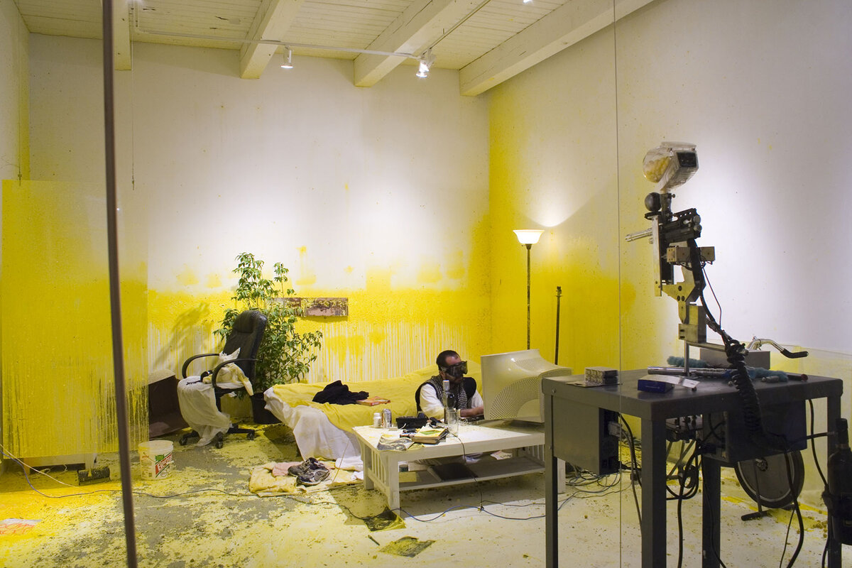 В предыдущей статье мы с вами поговорили о случаях, когда современное искусство переступило черту. Баночки с ******* и блюющая девушка... Теперь я хочу рассказать вам об авторах, заслуживающих уважения. Начнем с теории. Все авторы, которые будут представлены далее -- концептуалисты. Это означает, что для них на первом месте стоит идея, которую они хотят донести до зрителя. Форма же, в которую будет обернута идея -- второстепенна. Их творчество не должно быть симпатичным или привлекательным. Оно может быть, странным, омерзительным и тошнотворным. Важен посыл. Вафа Билал. Внутреннее напряжение. Вафа Билал -- американский художник, родом из Ирака. Человек не без образования. Ранее Вафа значился профессором школы искусств Чикаго, о которой я писал в своей первой статье про современное искусство. В 2007 году Вафа устроил перфоманс. На протяжении месяца он жил в комнате... В комнате также была установлена камера, через которую каждый желающий мог наблюдать круглосуточно, в режиме онлайн з