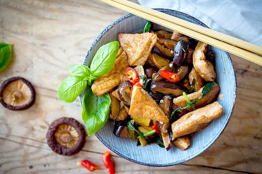 Ингредиенты: 450 г – твердого тофу 3-5 шт – сушеных шиитаке 2 зубчика – чеснока 2 см – имбиря 1 стрелка – зеленого лука 3 ст.л – растительного масла зелень на свой вкус соус 1 ст.л – светлого соевого соуса 1 ч.л – темного соевого соуса 1 ч.л – темного рисового уксусу 1 ст.л – устричного соуса ½ ч.л – кунжутного масла 1 ч.л – сахара Приготовление: По желанию можно для цвета и огонька добавить немного перчика чили. Приятного аппетита! Если вам понравилось, поставьте 👍, чтобы понимать предпочтения участников канала и быть более полезным. Делитесь понравившимися рецептами с друзьями, нажав кнопку "Поделиться".
