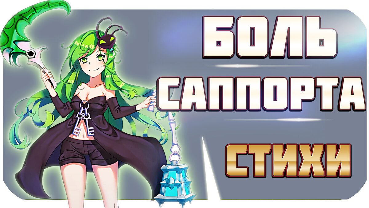 Всем привет! Мы сочинили Стихотворение про саппортов и их нелегкую жизнь. Возможно у Вас были такие же ситуации. Расскажите в комментах как часто вы встречаетесь с такими катками и тиммейтами? Не опускаете ли руки? О жизнь саппорта как же ты противна Всегда зависишь от других людей У адк скила совсем не видно В лесу не вижу адекватных я людей На топе постоянные проблемы Нет фарма, умирает просто так Не понимает он начальной темы И в чат орет он, что Лесник мудак На Миде Ари обнимает башню Стоит же против зеда щас она Со всех хвостов сейчас её обвисших Стекают струйки лисьего отборного гавна И ты как саппорт думаешь о жизни Варды расставил ты в своих кустах Твой Адк как полненькое днище Не видит снова приближенье лесника А ты стоишь со счетом два четыре девять Не понимаешь что ты делаешь не так Ты на Треше, ты можешь только верить Что все таки придет Лесник- мудак. И вот он прилетает словно сокол Ему в кусты кидаешь ты фонарь Его он просто мимо пробегает И отдается боту словно твар