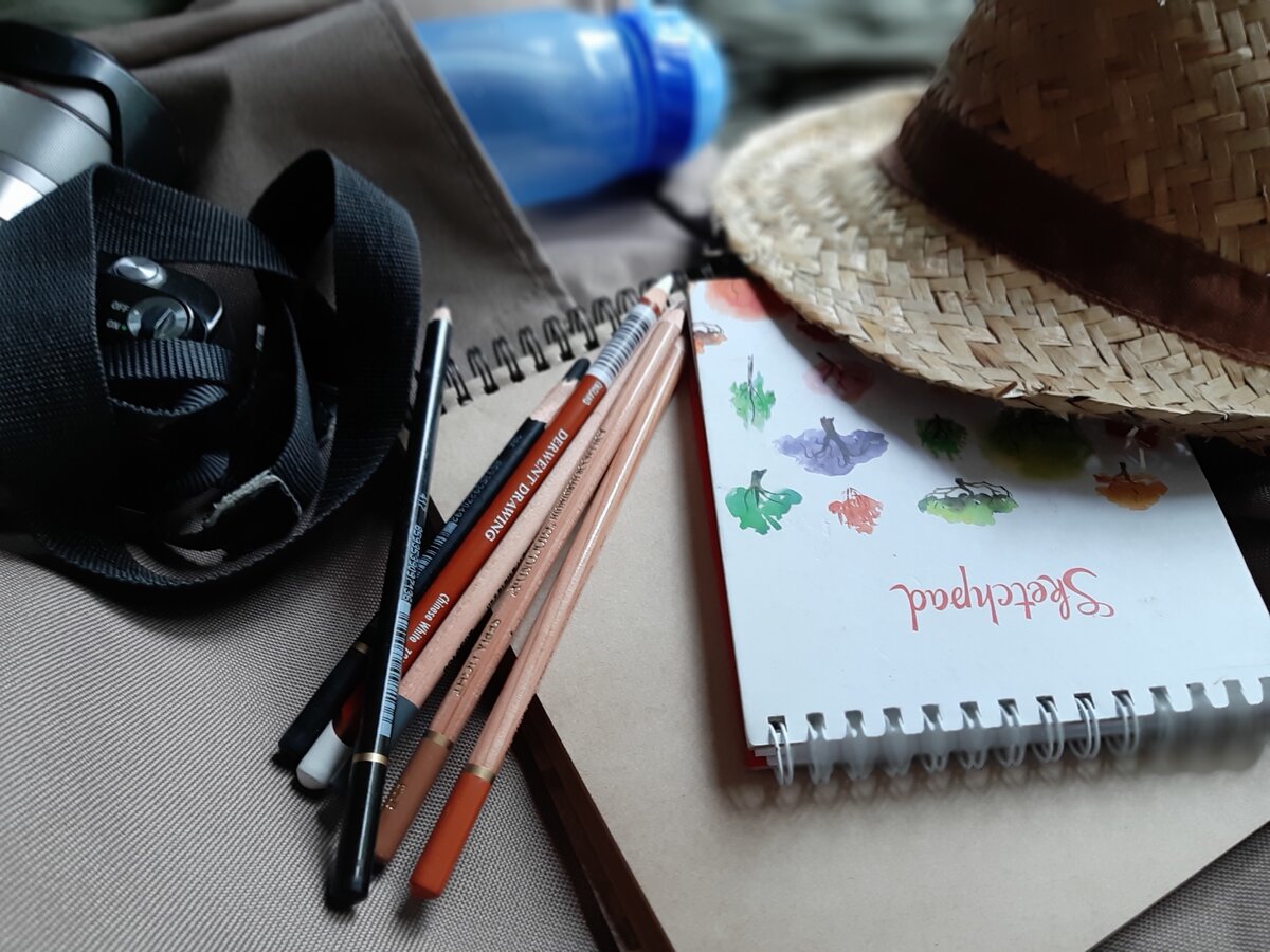 Если путешествуете с компанией, в которой вы один только и рисуете – не стоит рассчитывать на объёмную работу, возьмите блокнот и несколько карандашей (маркеров, мелков – кому что удобнее). Продумайте, как всё это хозяйство сложить так, чтобы можно было удобно и быстро достать, когда появилась возможность сделать набросок.