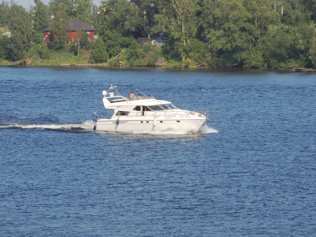 Река Нева, что находится в Ленинградской области, очень достопримечательна дачными коттеджами на своих берегах. Здесь довольно много непростых людей имеет недвижимость. Вот к примеру один из них возвращается с Ладоги в гавань Дубровского яхт-клуба. Очень мощная и дорогая яхта. Наш сосед прилетел на вертолёте с работы. Вертолёт у него классный был. Когда он пролетал над нашей Дубровкой, все знали, что это именно он домой вернулся. Летал красиво, эпатажно. Жалко человека, говорят разбился осенью в 2014 году. Вообще, у нас тут всегда движуха, постоянно кто-то летит, кто-то плывёт! Красивый дом. Всё - таки хозяин был, владелец крупной строительной компании. Лично был знаком с его приусадебным хозяйством, так как обслуживал его большой красивый сад. Нева - это вам не река Москва! Вода здесь намного чище! Даже самый захудалый домик на реке Неве имеет огромную цену на рынке недвижимости. Эта дача начальника высокого ранга из МЧС. Тоже иногда на вертолёте прилетает. Скромненькая