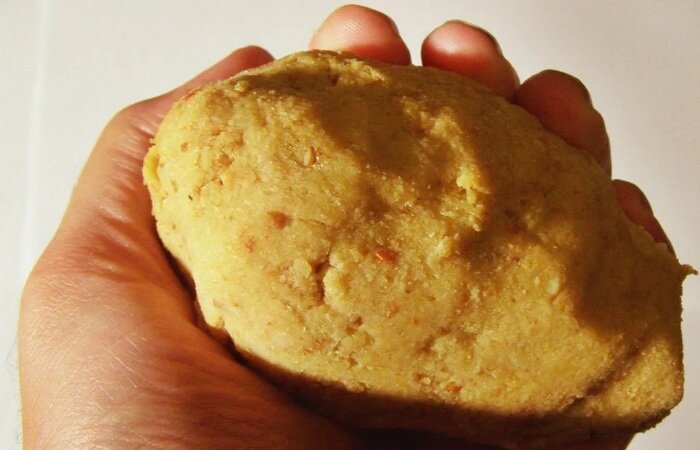 Раздел: Насадки для летней рыбалки Данная насадка оказалась весьма результативной во время рыбалки на рыбу из семейства карповых. Ее изготовление довольно томительно, однако, если рыболов не поленится и перед рыбалкой заготовит данное тесто, то как говорится, будет полностью готов к схватке с трофеем. При этом вероятность поймать трофей хорошего размера возрастает при увеличении диаметра насаживаемой на крючок приманки. Готовится карповое тесто довольно просто, а примененные в нем ингредиенты, наверняка без труда отыщутся на прилавках продуктовых магазинов. Прежде всего, следует приобрести немного цельного сухого гороха, овсяные хлопья, пшеничную муку и растительное масло. В одной посуде необходимо отварить горох в количестве около половины стакана, а в другой четверть стакана овсяных хлопьев. Затем горох превращают в подобие каши, добавляют в него овсяные хлопья, тщательно перемешивают и, подсыпая муку, месят до образования теста. После этого из теста формируют блин, который две-три м