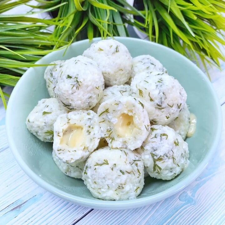 Сыр нарезать кубиками толщиной около 1 см. Сформировать шарики, поместив внутрь кусочек сыра.