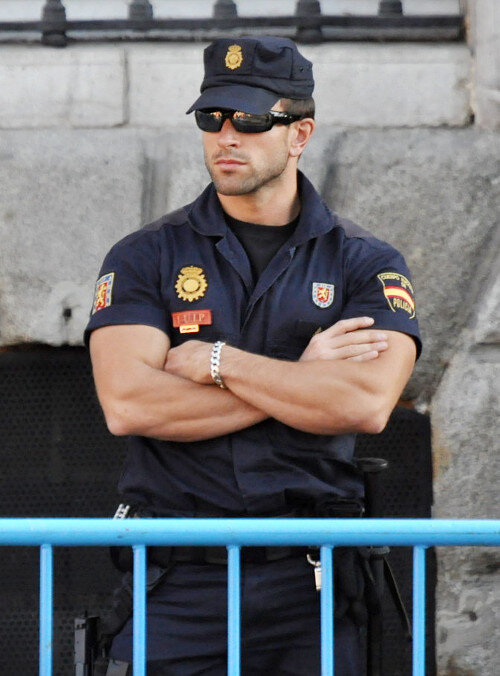Если вы увидели на улице подтянутого мужчину в форме и с оружием на поясе, то возможны несколько вариантов: О том, насколько горячи испанские полицейские внешне, ходят легенды среди одиноких туристок и даже не одиноких местных жительниц. Испанским полицейским можно носить бороды и даже татуировки на видных местах. Большинство из них с телосложением профессионального бодибилдера. К полицейским в Испании относятся очень уважительно. Любой может к ним обратиться за помощью, а иногда они и сами предлагают своё сильное плечо помощи, руку помощи или ещё что-нибудь помощи. Однажды, когда наша знакомая просто присела на скамейку отдохнуть, проходящий мимо полицейский спросил, всё ли у неё хорошо, а то “так жарко (а с его приходом стало ещё жарче), может скорую вызвать?” Зарабатывают слуги закона от 1100 до 2000 евро в зависимости от региона, длительности службы, количества смен и т.п. И они настолько законопослушные, что пытаться дать им взятку - ОЧЕНЬ плохая идея. Её просто никто не возьмёт,