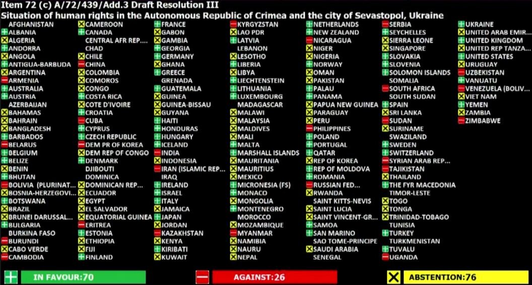 Для началы обратим вниманию на голосовалку в ООНИ , ну кто за нас и кто супротив ( исраэль знамо дело супротив, но про то никто джыть ни напишыт, акромя нас с вами , ну сие те самыи мыхи, коие оккупирывали чужую землю, вот они самыи называют русскую территорию с русским населением, то исть Крым - оккупирываннай территорией, оккупант знамо дело РФ . ЗАПОМНИМ СИЕ )