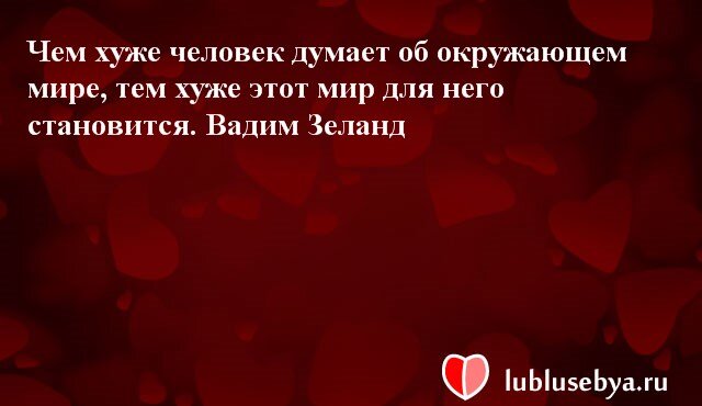 Чем хуже человек думает об окружающем мире, тем хуже этот мир для него становится. Вадим Зеланд Копировать цитату Итак, все в этом мире шло своим ходом — за Цитаты. Мысли великих людей в картинках. Подборка №lublusebya-08381222042019