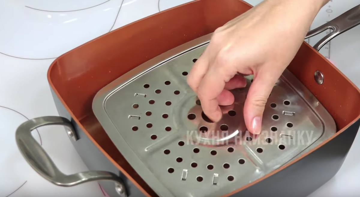 Очень люблю скумбрию! И частенько готовлю ее. Хорошо, что рыбный магазин в двух шагах от дома 😊 Сегодня покажу один из способов приготовления скумбрии, который я использую чаще всего. Пожалуй, он самый быстрый. И, к тому же, рецепт диетический - ни соли, ни масла! Как я готовлю эту рыбку, смотрите в видео ниже на 08:11. Там же еще 4 невероятно вкусных и очень простых рецепта приготовления скумбрии - запеченная, маринованная, соленая... Посмотрите - вам точно понравится! ПРИГОТОВЛЕНИЕ: Для этого рецепта я использую пароварку. Если есть мультиварка - можно готовить в ней (на пару). Если нет ни пароварки, ни мультиварки, можно поставить сито в кастрюлю с водой, налить немного воды и накрыть крышкой - вот вам и пароварка! Или, как делала моя бабушка - натянуть на кастрюлю марлю и также накрыть крышкой. У меня вот такая (сковорода с сеточкой): Скумбрию хорошо мою, удаляю голову и внутренности и разрезаю на кусочки. У меня средняя рыбка. Я разрезаю на три части. Наливаю в пароварку воду