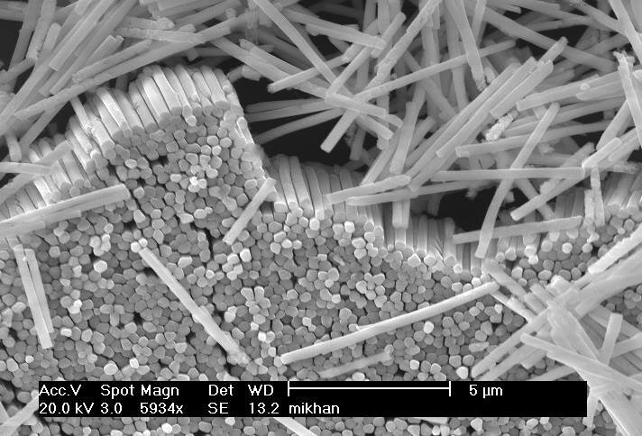 Немецкая компания NanoWired из Гернсхайма разработала новый способ соединения электрических проводников, не требующий применения винтов, клемм, накрутки и пайки. Поверхности соединяемых компонентов должны быть заранее подготовлены - с помощью специального гальванического процесса (см. фото ниже) покрыты слоем нанопроводов из меди, никеля, серебра, платины или золота (возможно применение и других металлов, допускающих электрохимическое осаждение). После сжатия при комнатной температуре проводники буквально проникают друг в друга, обеспечивая отличный контакт, высокую прочность и теплопроводность перехода. Процесс соединения назван KlettWelding, в переводе - «Липкое сваривание». Соединённые таким образом проводники выдерживают высокие температуры (600 °C и выше) и механические усилия, при которых классические припои и клеи расплавляются и разрушаются. Благодаря исключению посторонних металлов, входящих в состав припоев, новые соединения хорошо выдерживает многократные перепады температу