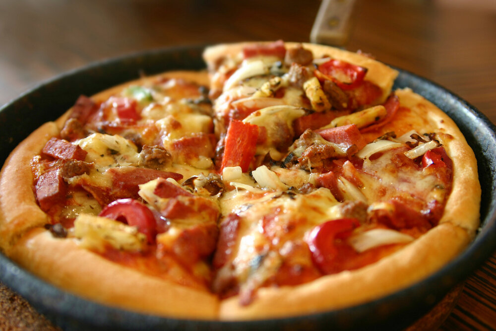 Если вы любите порадовать себя вкусной пиццей,но не любите долго заморачиваться то этот рецепт для вас! Домашние оценят по достоинству! Ингредиенты Приготовление 1.В миску разбиваем яйца, добавляем майонез и сметану. Взбиваем кулинарным венчиком. Солить не нужно,майонез даст необходимой солоноватости. 2.После этого постепенно добавляем муку и хорошо перемешиваем. Наше тесто готово. Оно должно быть жидковатым, по консистенции - как сметана. 3.Сковороду смазываем подсолнечным маслом. Тесто выливаем в сковороду и распределяем его . Основу для пиццы равномерно смазываем кетчупом. 4.Лук чистим, режем полукольцами . Выкладываем слой лука. 5.Выкладываем ветчину или колбасу, нарезанную кубиками. Затем выкладываем помидоры, нарезанные пластинками. 6.Посыпаем тертым сыром и зеленью. 7. Накрываем крышкой и ставим пиццу в сковороде на маленький огонь. Обычно пицца на сковороде за 10 минут уже готова. 8.Если вы все сделали правильно,то сыр хорошо расплавился, а низ зарумянился.