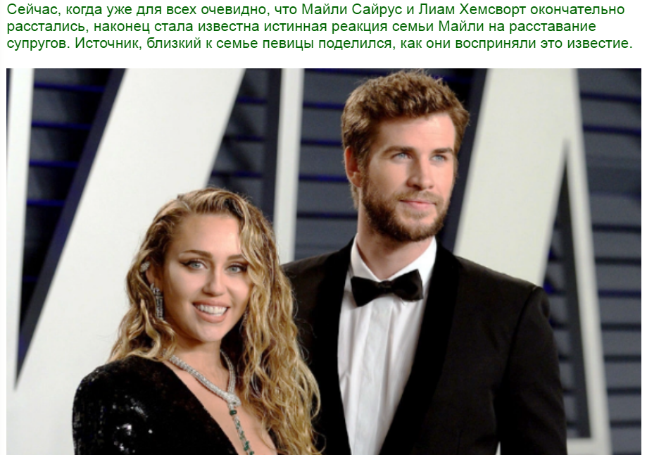 Как отреагировала семья Майли Сайрус на ее разрыв с Лиамом Хемсвортом: Новостной Терминал