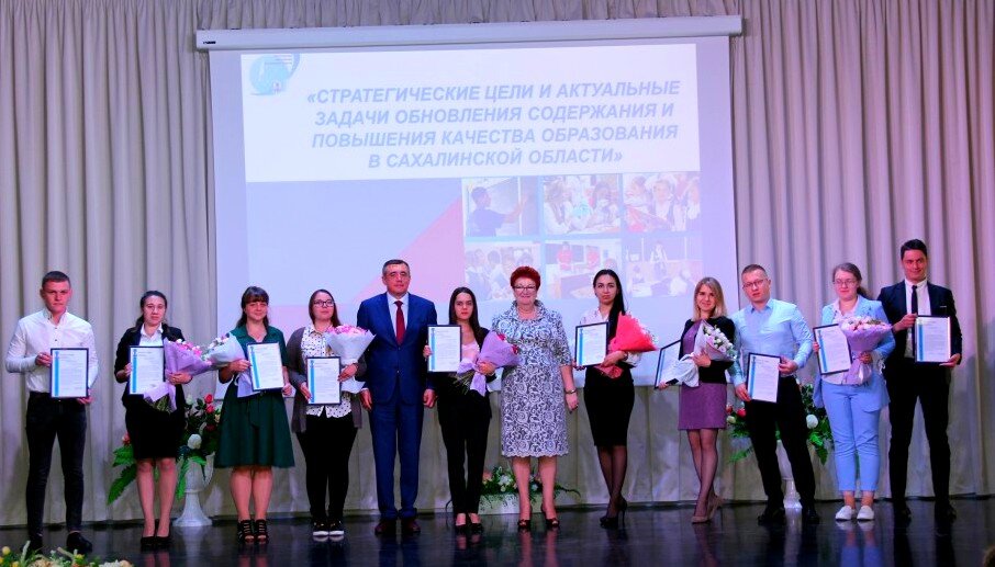 Конференция завершилась церемонией награждения лучших работников образования Сахалинской области. Отдельное внимание уделили молодым специалистам. Напутственное слово и букеты цветов помогли сделать начало их профессиональной деятельности ярким и незабываемым. Ожидается, что в этом учебном году ряды островного педагогического сообщества пополнят более 150 молодых профессионалов.