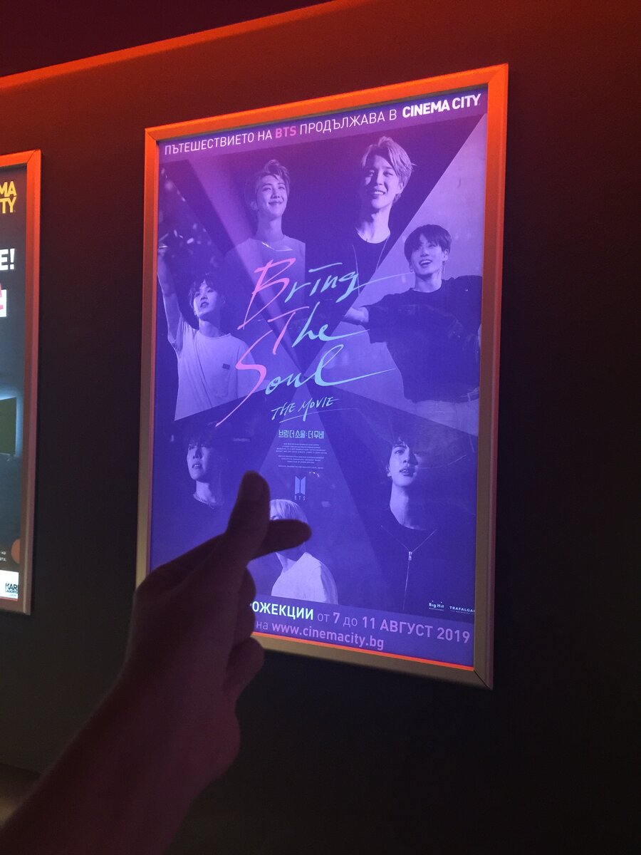 Всем привет! Как ваше настроение?) Сегодня официально закончились показы в кинотеатрах нового фильма от BTS — Bring The Soul The Movie. Я решила, что можно высказать своё мнение и поделиться впечатлениями от фильма. Начать хотелось бы с того, что я была приятно удивлена декоративной составляющей фильма, то есть монтажом, спецэффектами, переходами и тд. Учитывая то, что звук в кинотеатре очень громкий и мощный, такие кадры смотрелись просто на высшем уровне. Особенно мне понравились моменты с выступлений парней. Возникало ощущение, что ты будто находишься на их концерте, вместе со всеми АРМИ. Что касается самого фильма- я осталась довольна. Мне понравилась идея, события, которые нам показали, а на самих участников я лишний раз взглянула с другой стороны. Я увидела, что они могут быть очень серьёзными и преданными своей работе, готовы постоянно совершенствовать свои навыки и мастерство, чтобы угодить фанатам. Но при этом поняла, что они бывают очень ранимые и искренние, хотя и пытаются