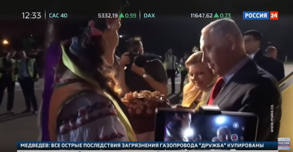 Супруга премьер министра Израиля устроила скандал на борту самолета в Киев. Саре Нетаньяху не понравилось, что пилот не поприветствовал её по громкой связи. Пресса пишет, что она встала с места и потребовала что бы её впустили в кабину пилота, но этому помешала охрана. Через некоторое время, капитан экипажа всё же поприветствовал супругу премьера. В концелярии правительства главы Израиля сообщили, что произошло недопонимание, которое быстро устранили. Но а ранее в сети появилось видео ещё с одним курьезным случаем с женой премьера. В Киеве чету встречали хлебом и солью. Биньямин Нетаньяху съел кусочек хлеба, затем протянул супруге. Но она не стала его каравай и бросила его на землю.