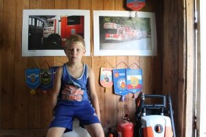 Глеб Чакров из Гусь-Хрустального, любит все, что связано с пожарной охраной и ее историей. У него прекрасная коллекция пожарных машин и атрибутики, которая непосредственно связана с профессией. Интерес к профессии пробудил отец, профессиональный пожарный из 12-ой пожарно-спасательной части Александр Чакров. Он работает в пожарной охране Москвы с 2007 года. Юный мальчишка уже с раннего детства начал создавать любимые игрушки с помощью подручных средств. Маленькие руки шестилетнего Глеба ловко вырезали детали пожарной машины. Постепенно вырисовывался силуэт самой любимой игрушки. Потом - склеенная из нарисованных деталей красная машинка, буквально ручной работы, украсила полку с игрушками. В это время в сарае начали исчезать некоторые инструменты: шланги для поливки огорода, лейки, баки для воды. Все все хозяйственные принадлежности, которые тем или иным способом связаны, с водой пропадали. “Куда могли исчезнуть эти непритязательные и не нуждающиеся во включенном внимании детали”, - д