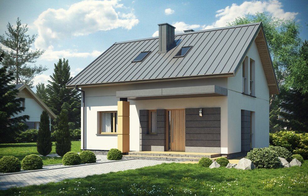 Бюджетный загородный дом мансардного типа, общей площадью 104,23 м2