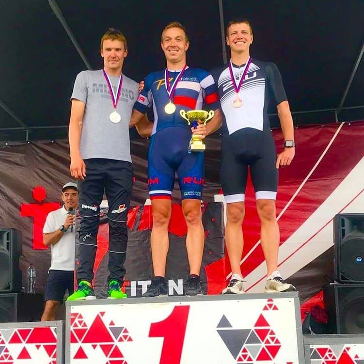 И Денис одержал победу на этих соревнованиях среди элиты преодолев пловцов 1,9км велосипедистов 90км и атлетов 21,1км !
