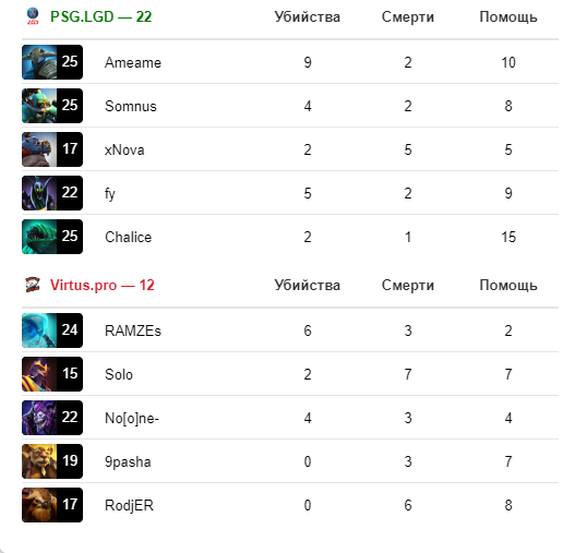 Варды не помогли выиграть-инфоргафика матча Virtus.pro и PSG.LGD