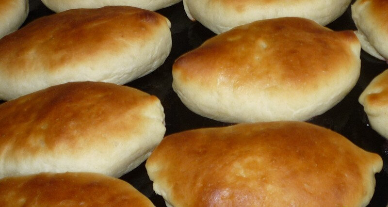 Замесите тесто, разделайте пироги (примерно 48 штук). Чтобы тесто не прилипало к рукам, слегка смажьте руки растительным маслом, рабочуюю поверхность тоже. Это удобнее, чем мукой посыпать.
