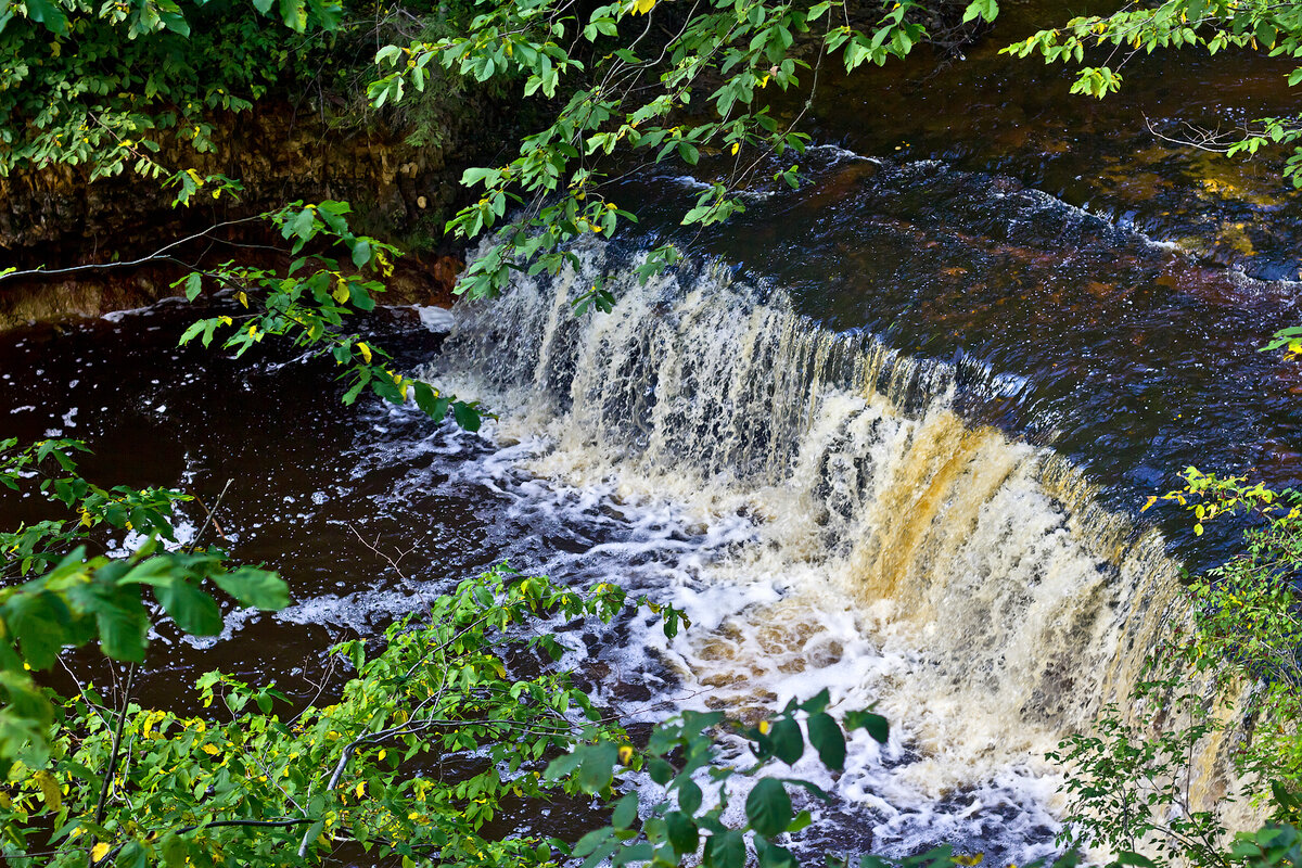 Здесь река течет в глубоком каньоне длиной около 50 метров, и с двух уступов, друг за другом падают два водопада.