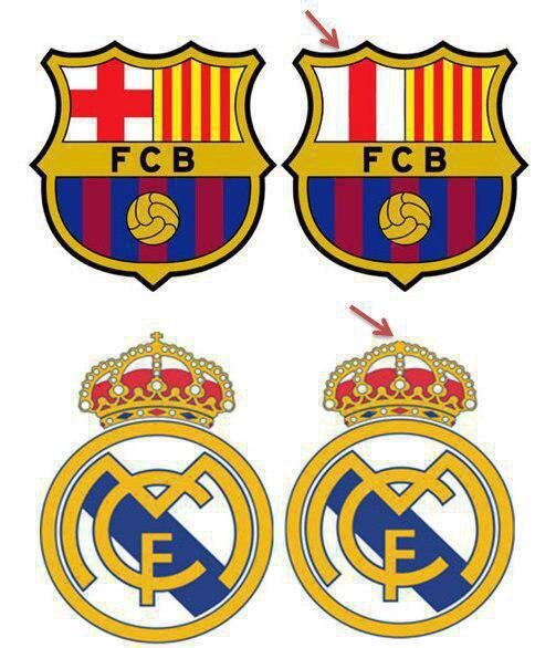 Підписавши у 2010 році спонсорський контракт з організацією Qatar Foundation, футбольний клуб «Барселона» погодився змінити свою емблему, яка розміщується на футболках для продажу в арабських країнах. Щоб на логотипі не можна було побачити образливий для мусульман хрест, з його лівого верхнього кута була прибрана горизонтальна червона смуга. Цьому прикладу пізніше послідував і мадридський «Реал», уклав з одним із шейхів ОАЕ угода на будівництво штучного острова з безліччю споруд вартістю в 1 млрд. $. Шейх зажадав виключити з клубної емблеми на всіх промо-матеріалах хрест, що вінчає корону, і королівський клуб виконав це прохання.