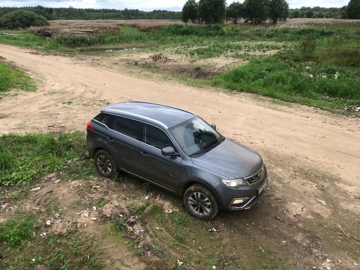 То что едет автомобиль идеально это было понятно после первой сотни пробега. Поэтому мы с Егором решили усложнить задачу. Выехав на грейдер, отключили систему стабилизации, повторять не советую, можно легко положить автомобиль на бок, и стали имитировать ритмический занос. Geely Atlas проявил себя в лучших традициях. Кроссовер не дал нам ни малейшего шанса развернуть его вокруг своей оси. Это явно пять баллов.