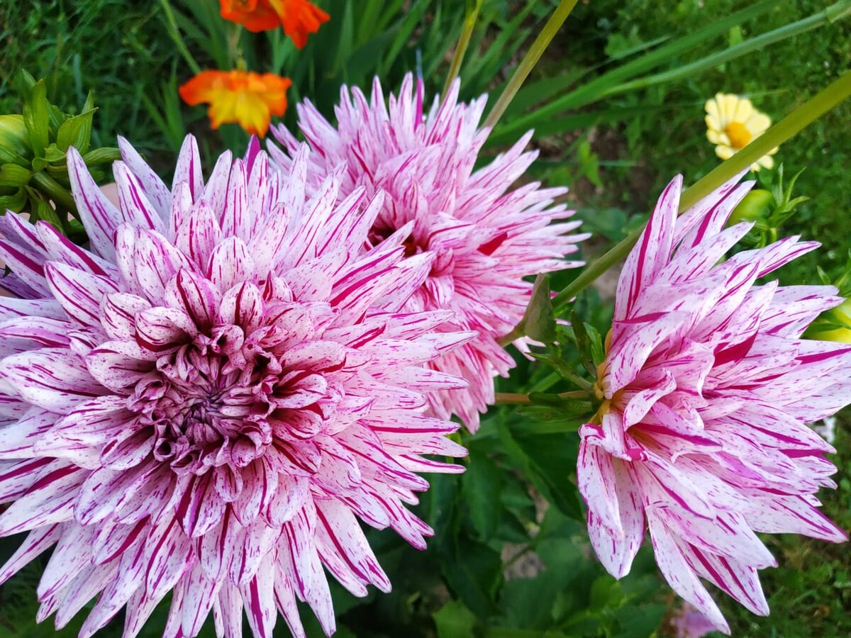 Хочу поделиться красотой своих георгинов. В этом году они необыкновенной красоты. Причем сажали мы их на место, где никогда ничего не расло кроме дикой травы. Я подготовила землю под посадку и просто засыпала клубни землей. Удобряю только натуральным удобрением из свежескошкной травы, замоченной на неделю, потом где-то два литра раствора на на ведро воды и поливаю. Еще мы собрали немного винограда, сорт "Изабелла". Есть урожай и белого винограда, но он еще не созрел к сожалению. Из собранного урожая, а его немного, по весне были заморозки и померзли хоорошие завязи, я закрыла компот, 3 трехлитровые банки, рецепт можно прочитать в следующем посте.