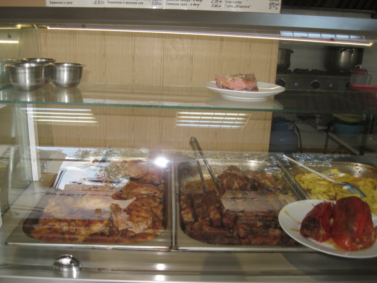 Бывая в Карнобате, я частенько захожу в это скромное заведение. Оно находится в самом центре городка. Кафе самообслуживания, которое мы с мужем между собой по привычке называем столовкой.